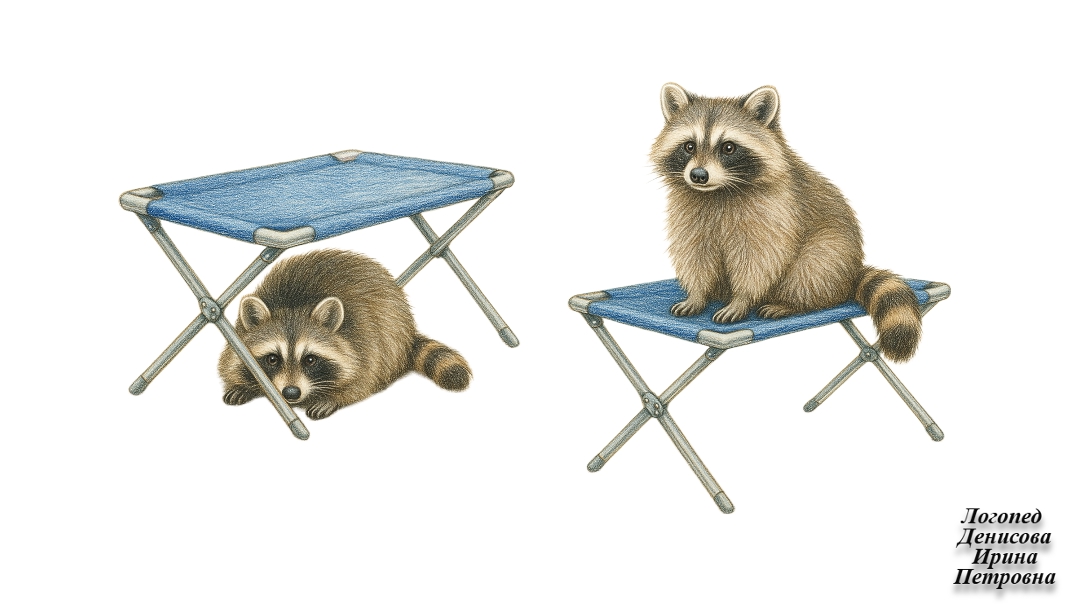 ПРЕДЛОГИ ПОД и НА. Енот. Рисунок. (307341709)