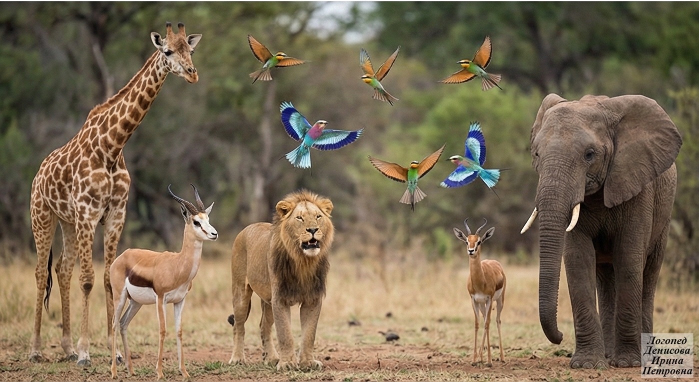 ЖИВОТНЫЕ АФРИКИ. Сюжетные картинки. Фото (309885696)
